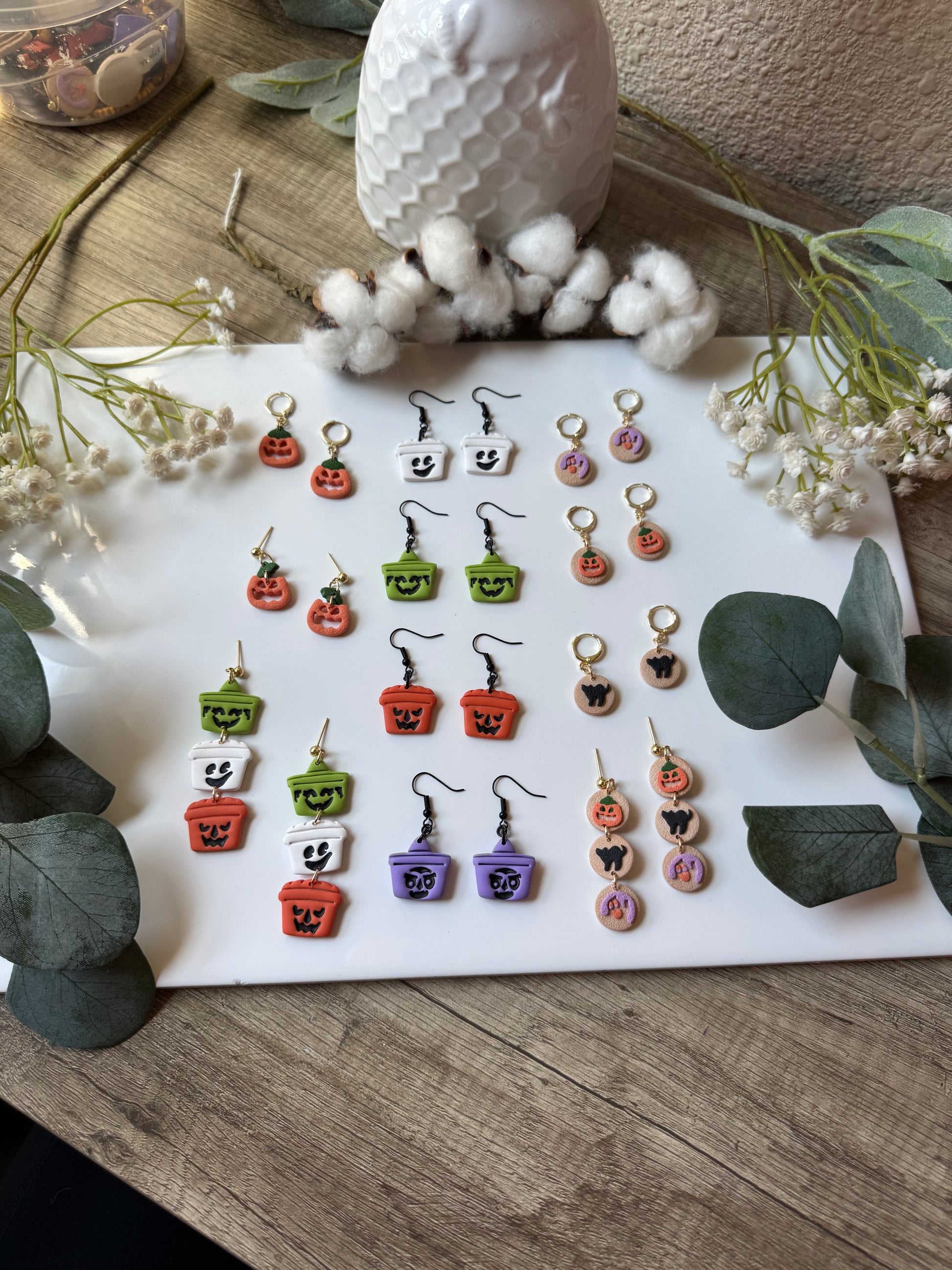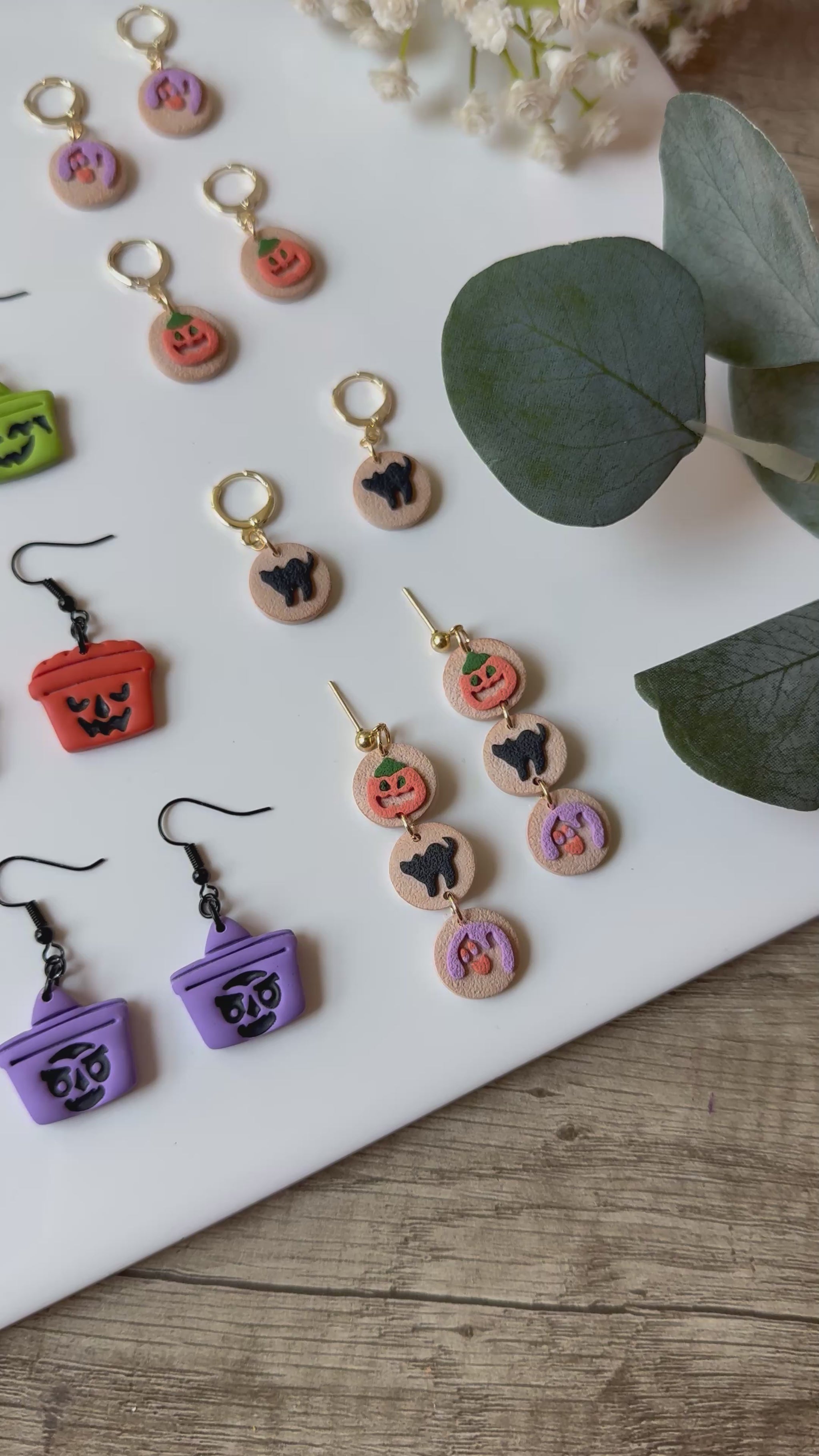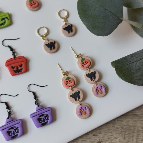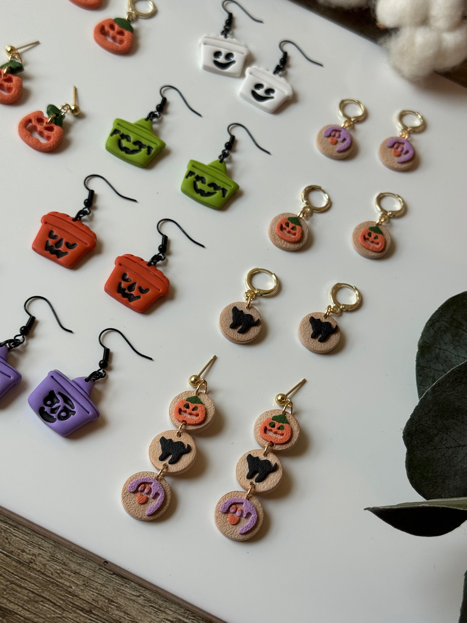 Celebrate spooky season with these playful handmade polymer clay earrings, inspired by everyone’s favorite Halloween traditions: Boo Buckets and Spooky Cookies!