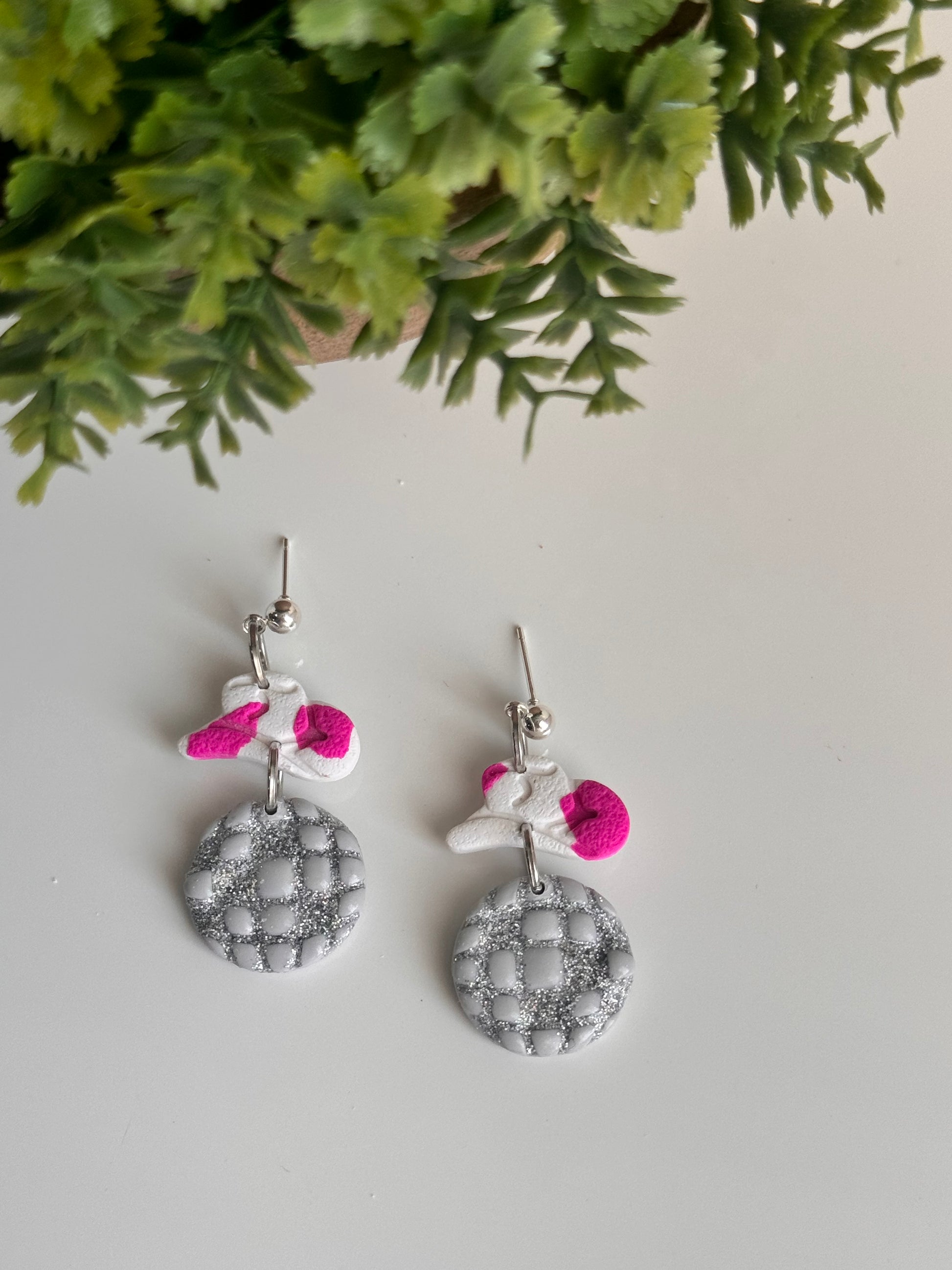 Pink cow print cowboy hats with silver and holographic glittered disco balls ✨