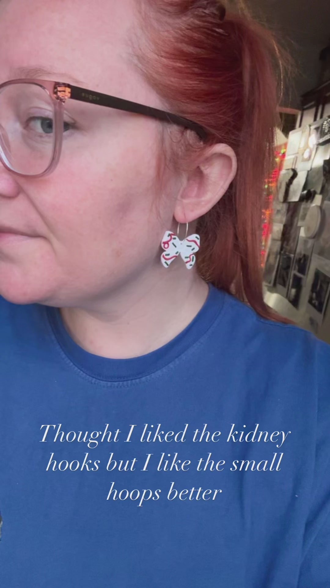Uhmmm I think I can safely say I’m having an obsession with the Little Debbie Christmas Tree Cakes… this time they’re gracing some cute little bows on small silver hoops 🤍🎄🎅