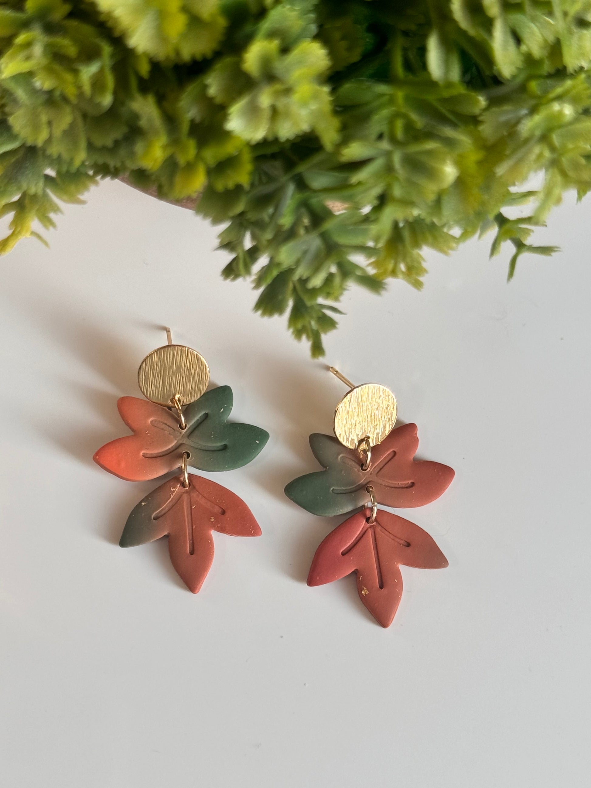 Cute little dangling ombré leaves in Green and Orange 🍁🤍