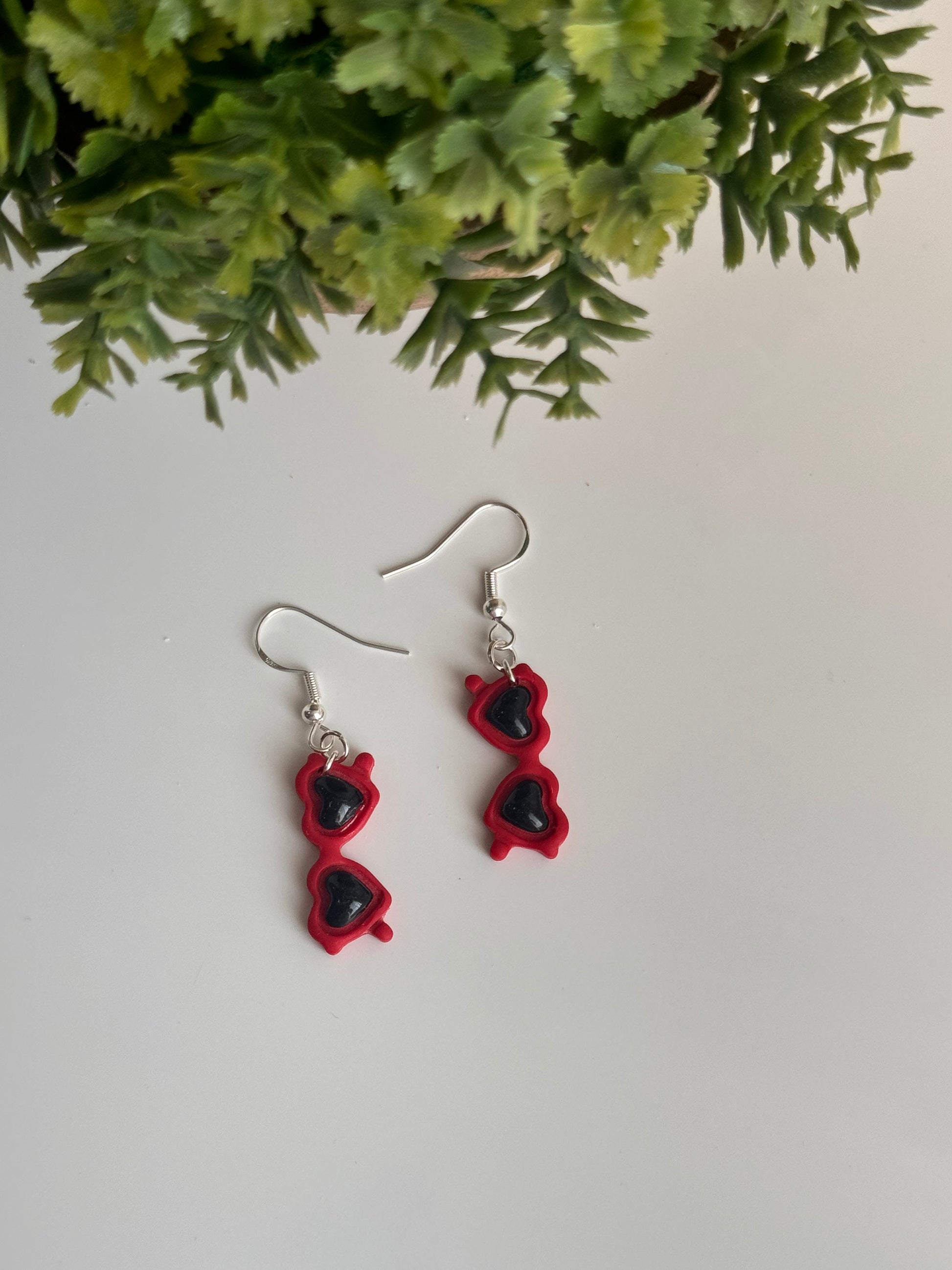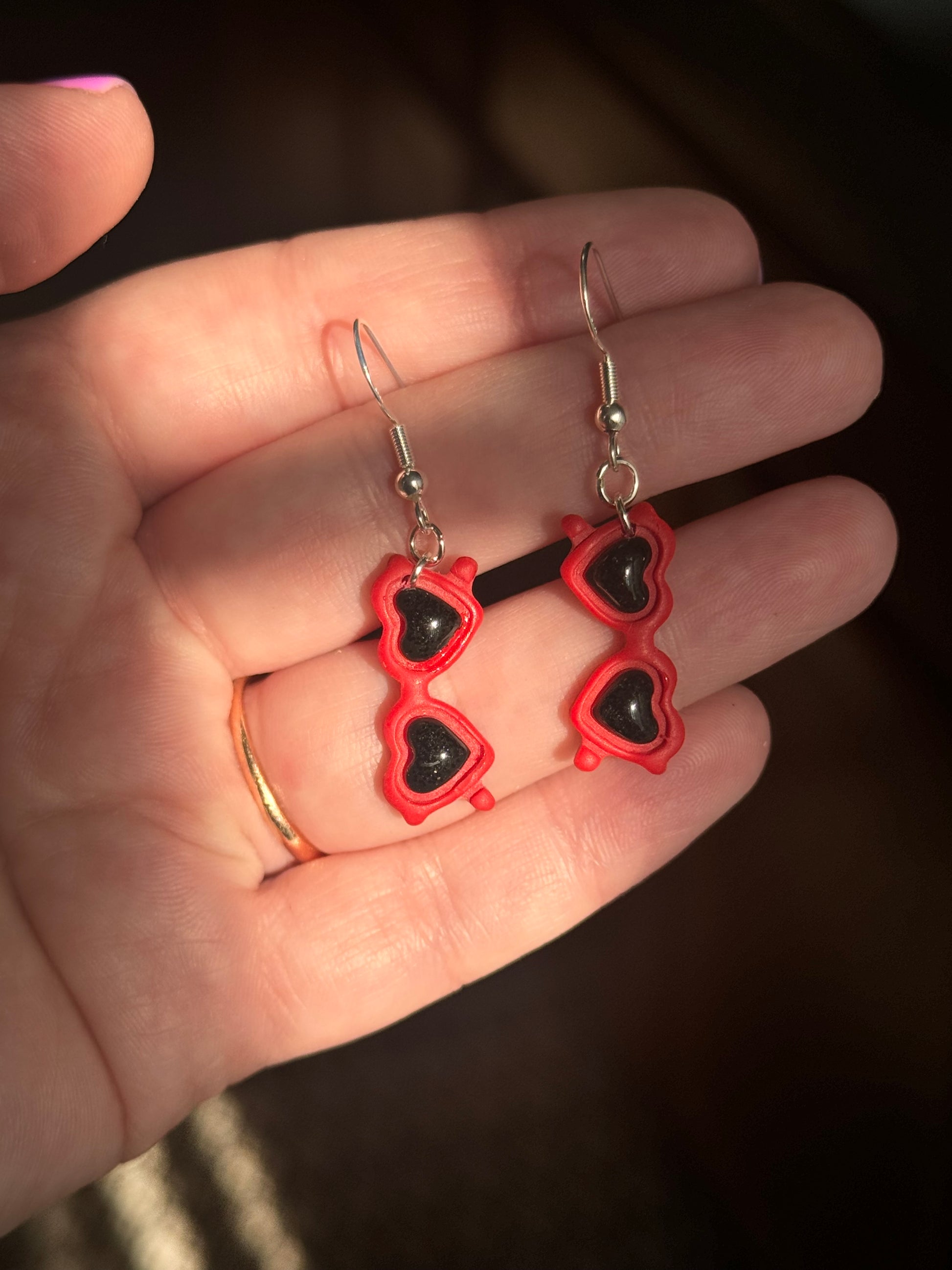Red Heart shaped sunglasses with black glitter lenses ✨