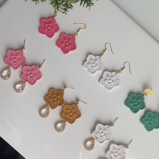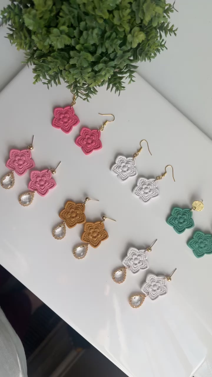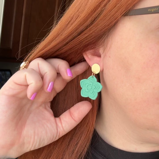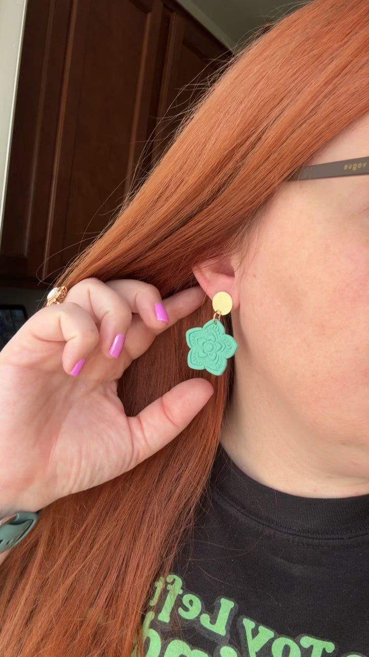 Turquoise green floral design on brass circle post ✨
