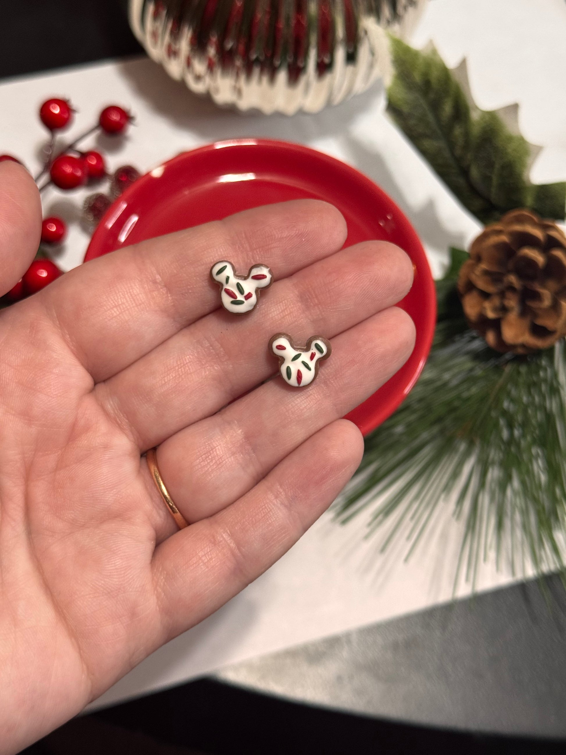 Take the magic everywhere you go with these cutie Mickey icon gingerbreads topped with white frosting and red and green sprinkles!
