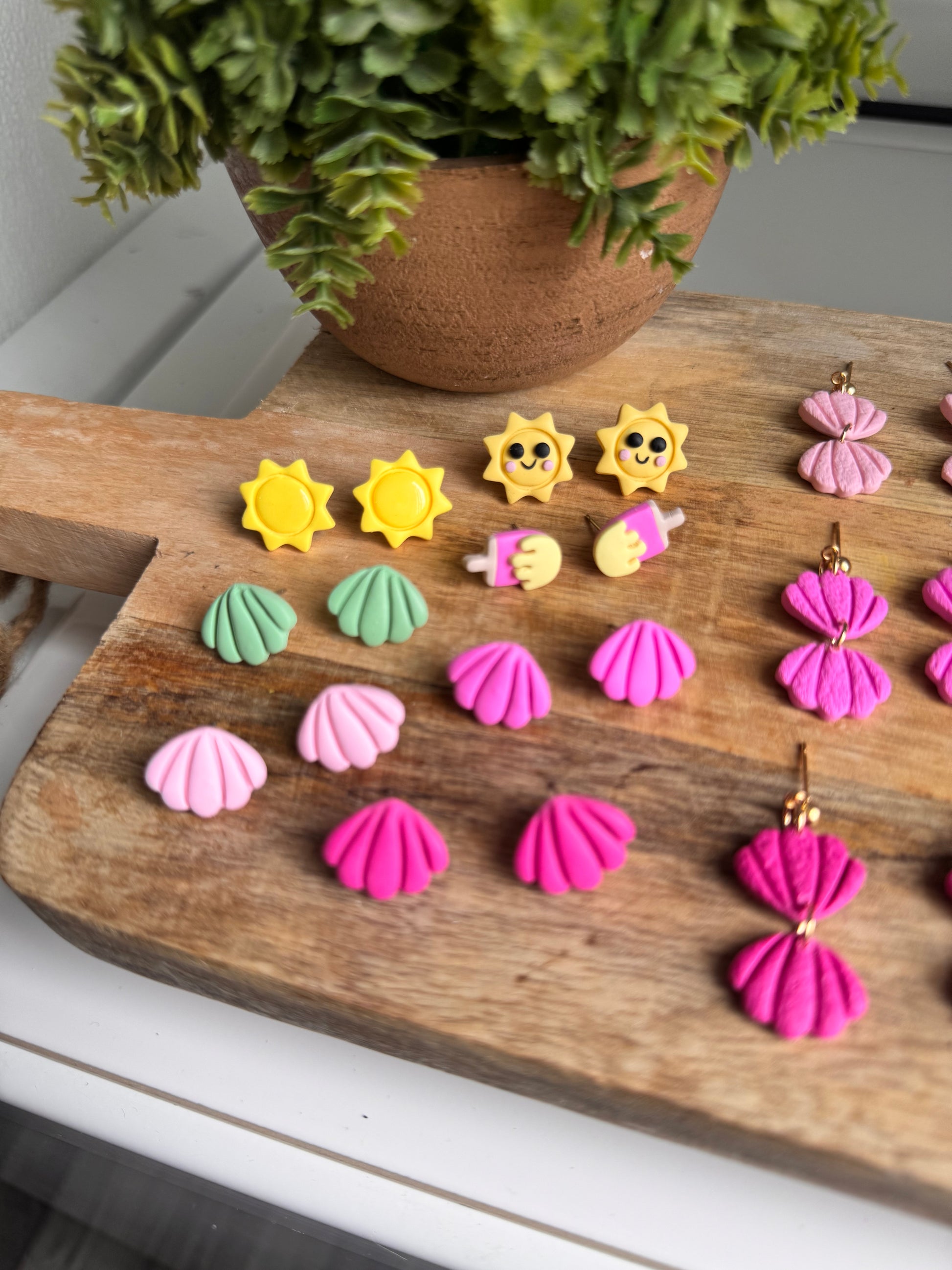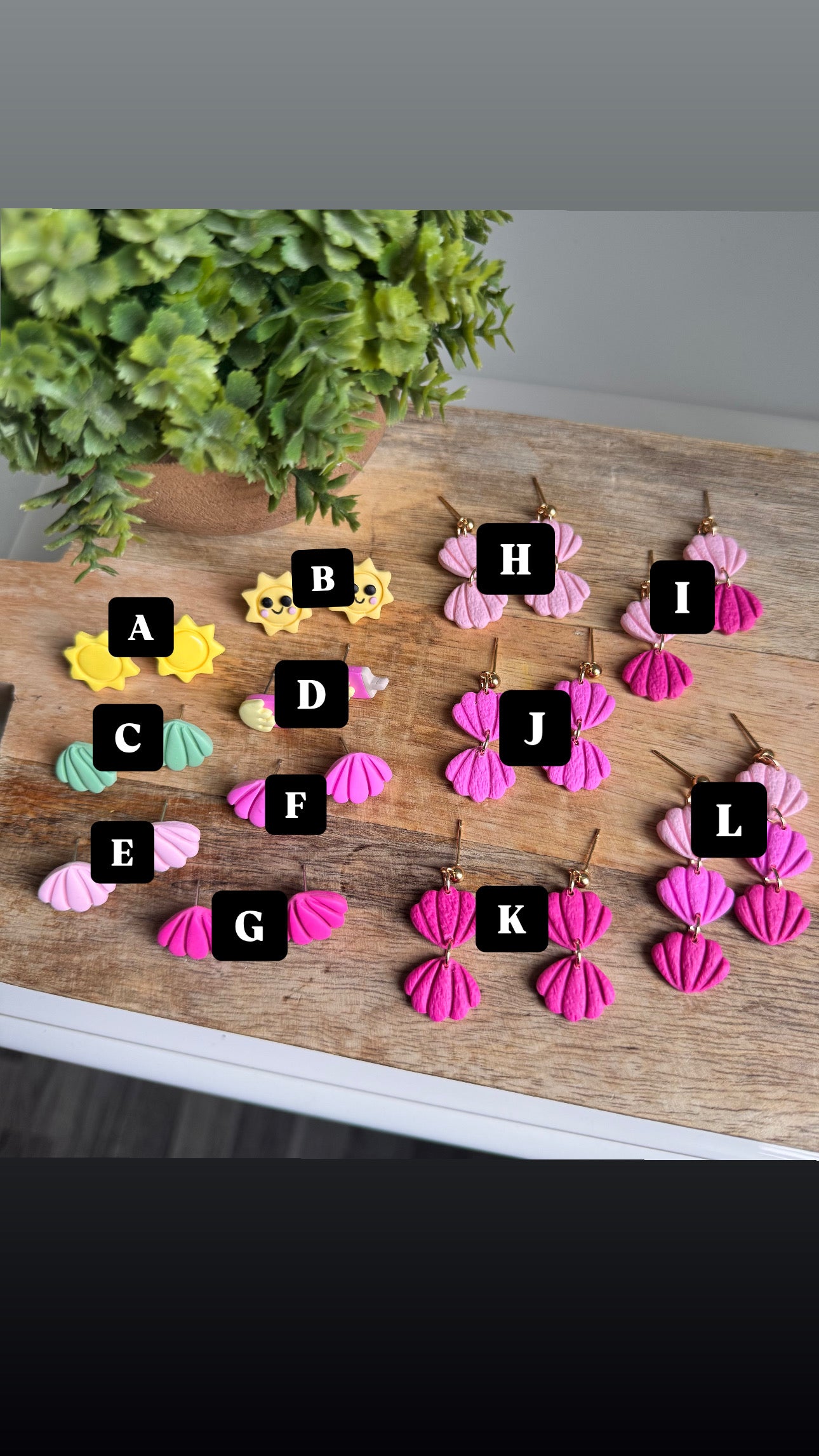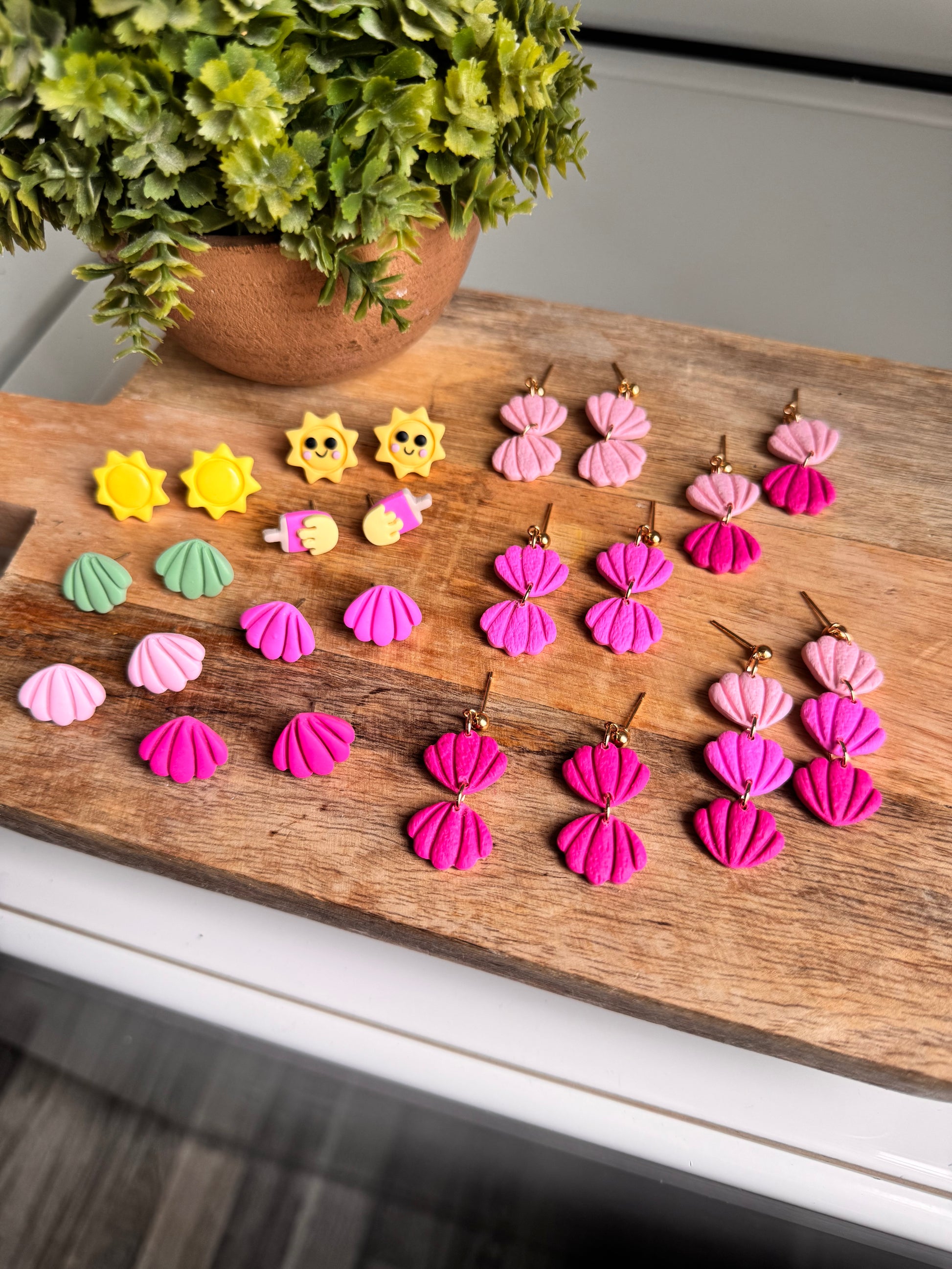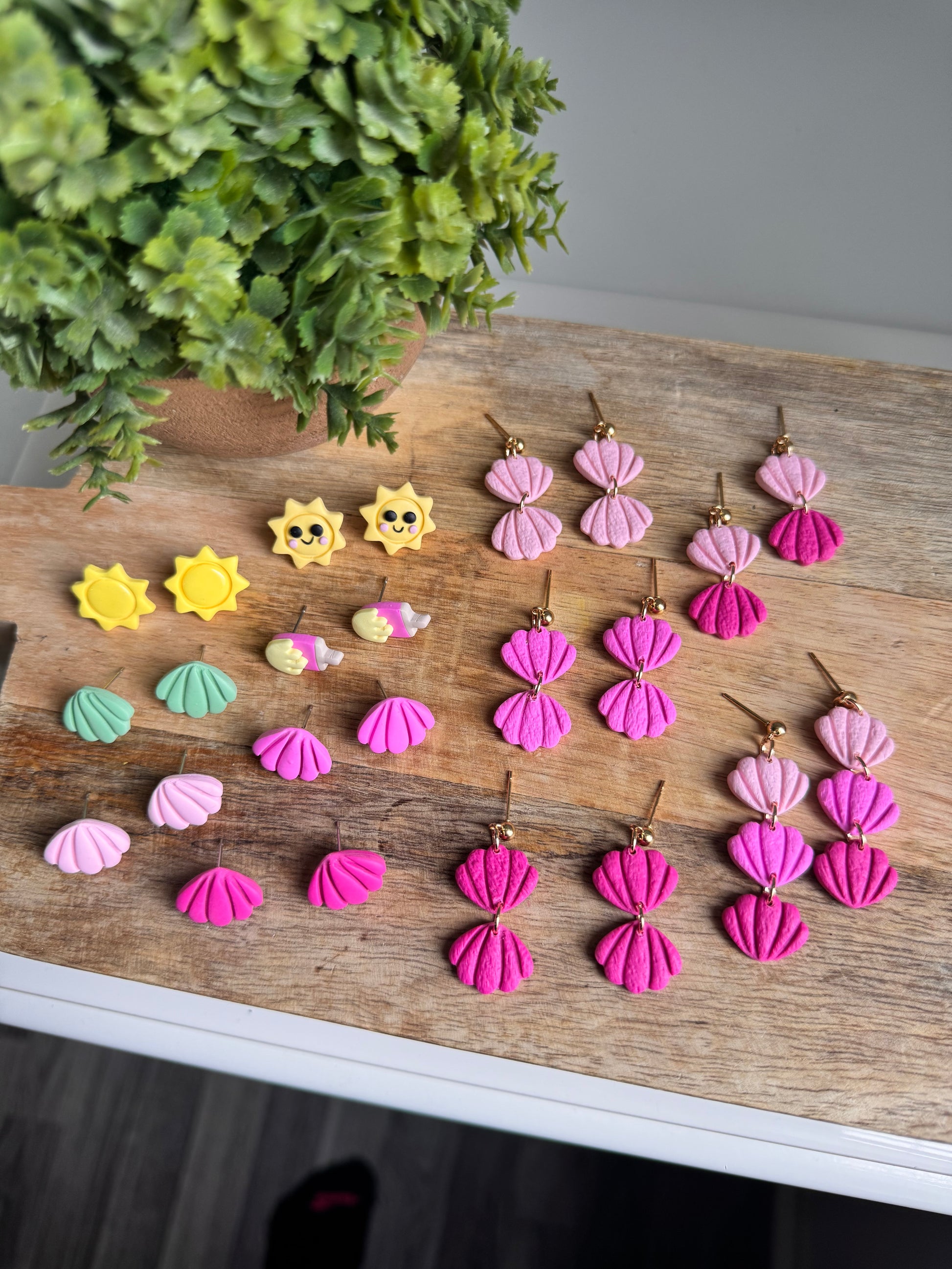 Brighten your day with these cheerful, handmade polymer clay earrings! Featuring a variety of fun, summery designsβfrom smiling suns and beachy seashells to layered pastel fansβthis collection is full of personality and charm. Each pair is lightweight, durable, and made with hypoallergenic hardware, perfect for sensitive ears.