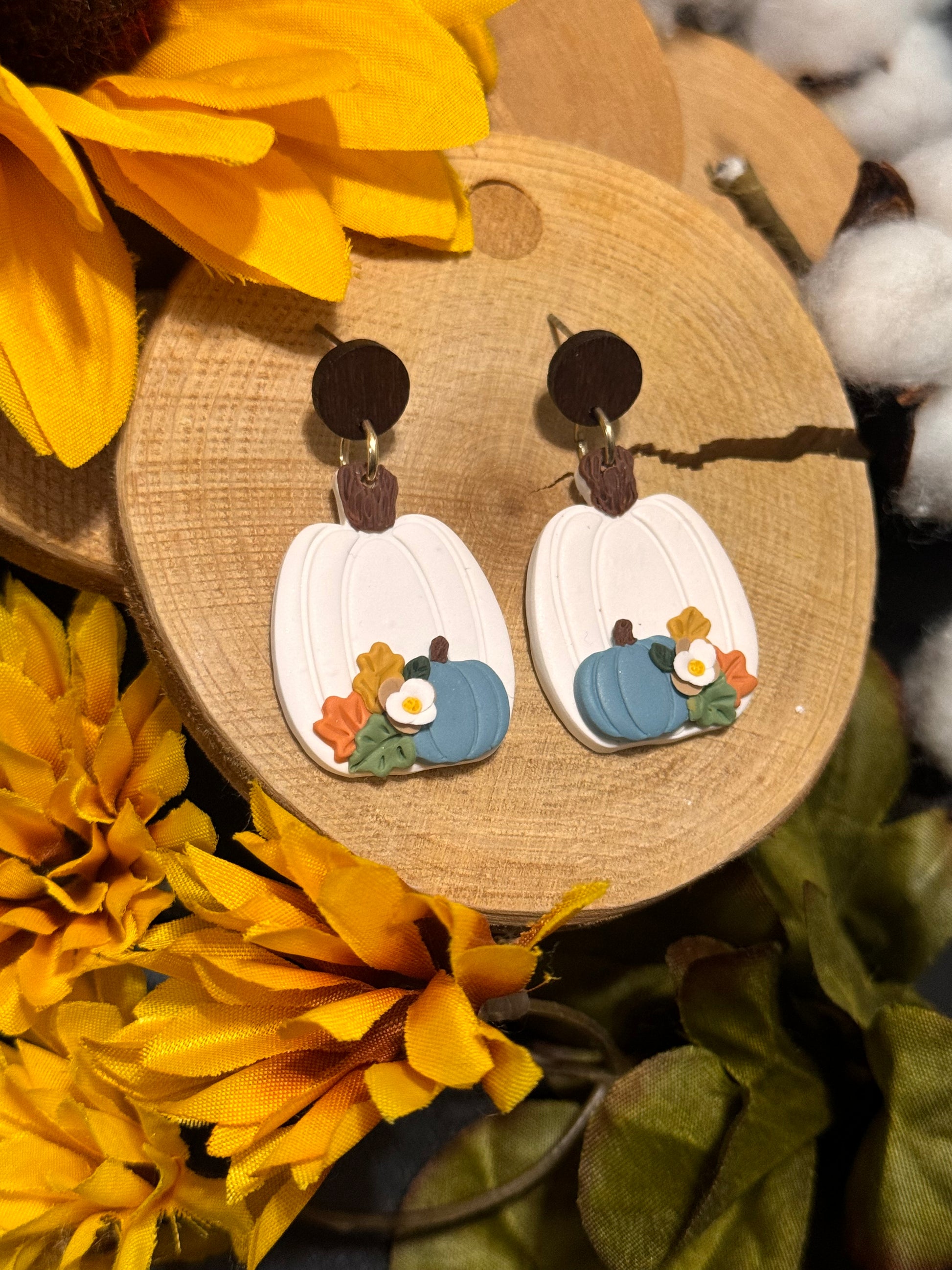 White pumpkin with blue pumpkin and leaves on top! Made with extra love and time π π€
