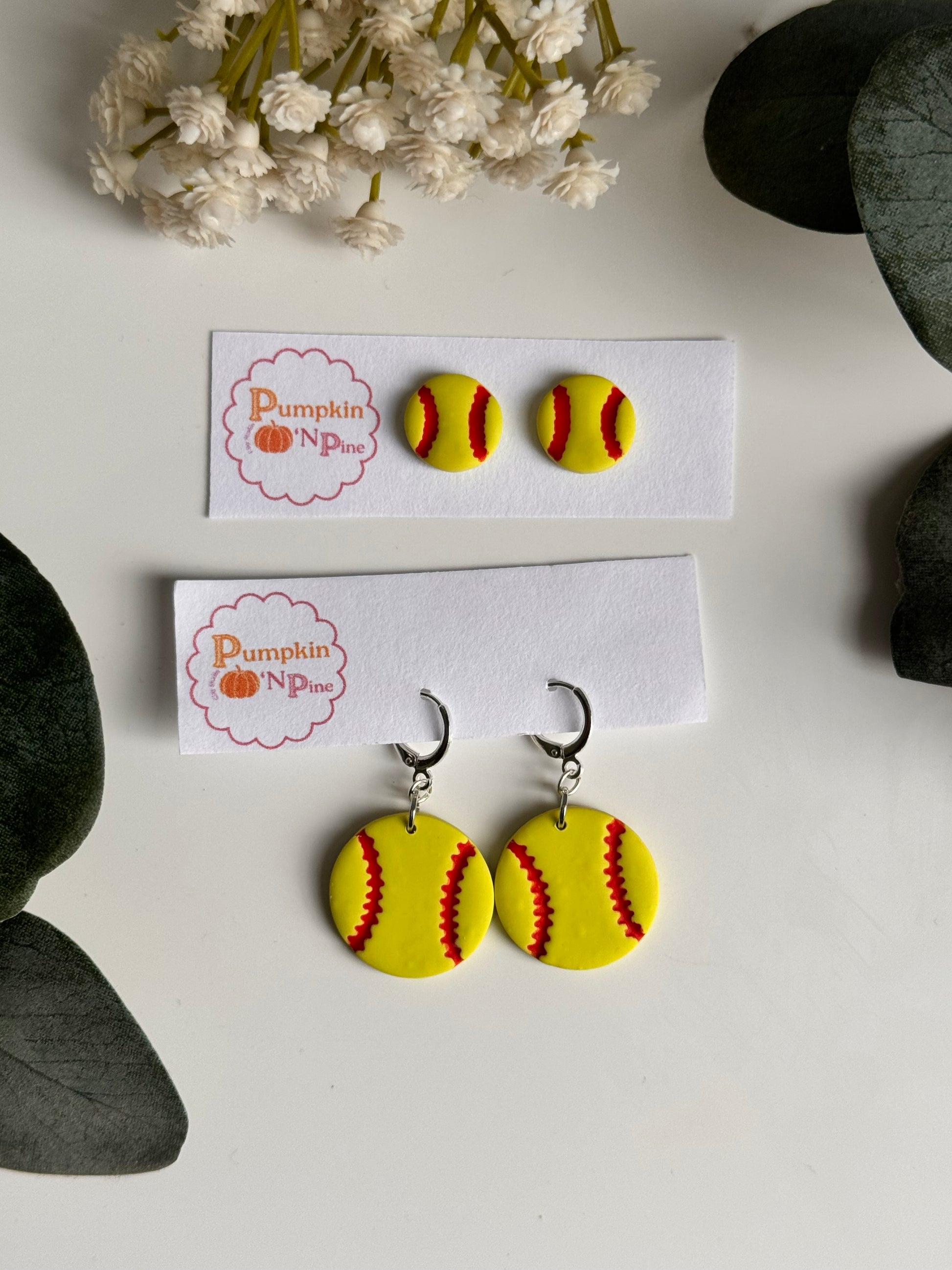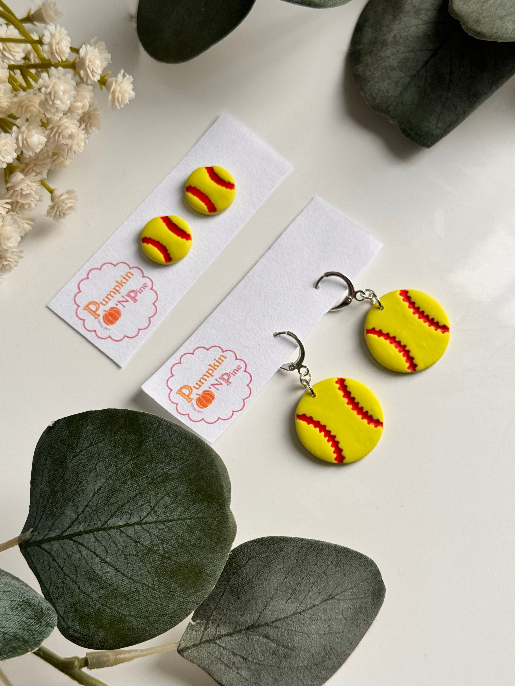 🥎 Softball Earrings – Polymer Clay Studs or Dangles | Handmade Sports Jewelry