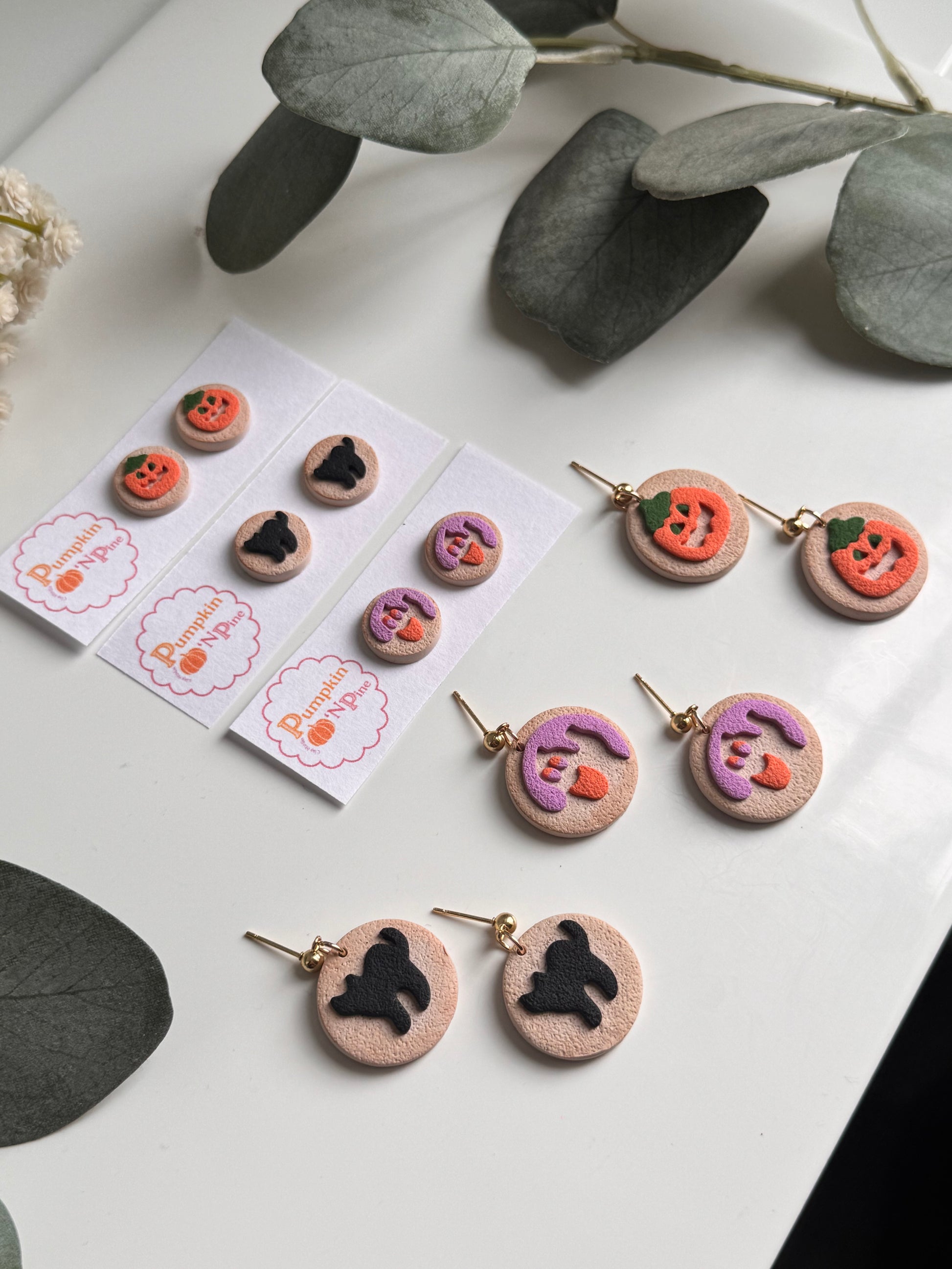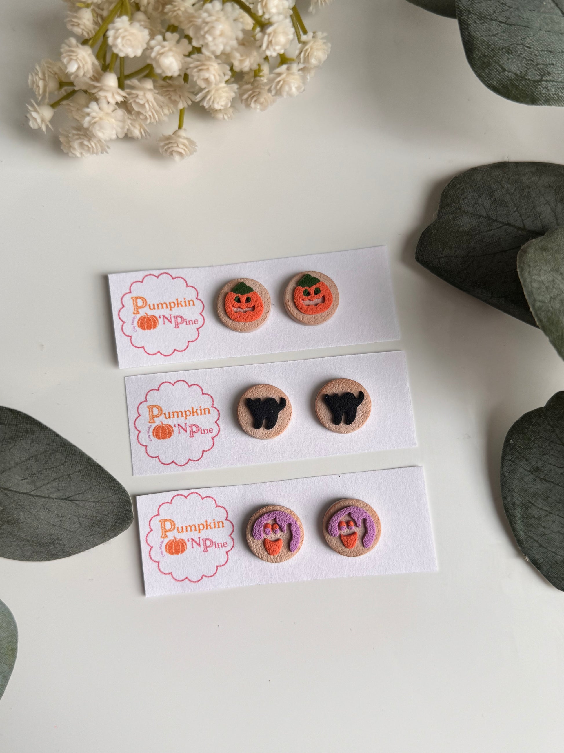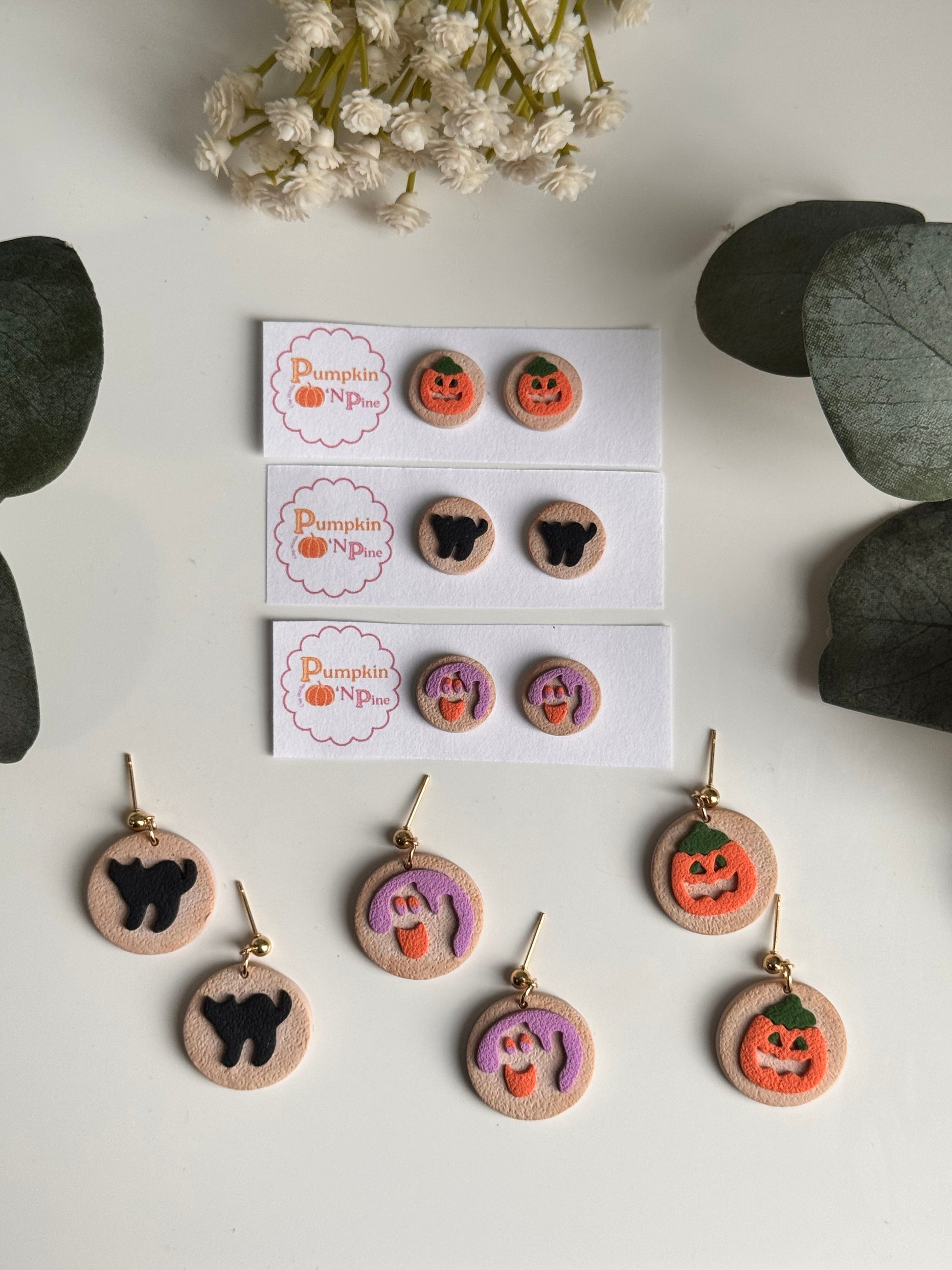 Get into the Halloween spirit with these adorably spooky polymer clay earrings, handcrafted with love by Pumpkin βN Pine! Each pair is full of festive charm, perfect for witches, ghouls, and pumpkin queens alike.