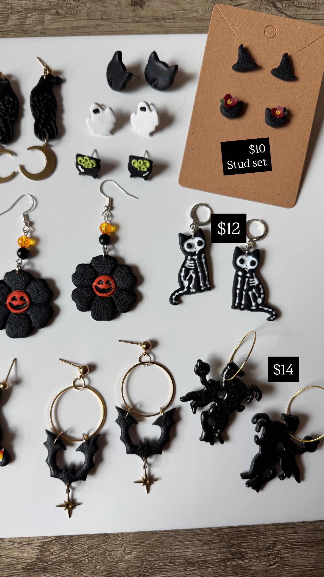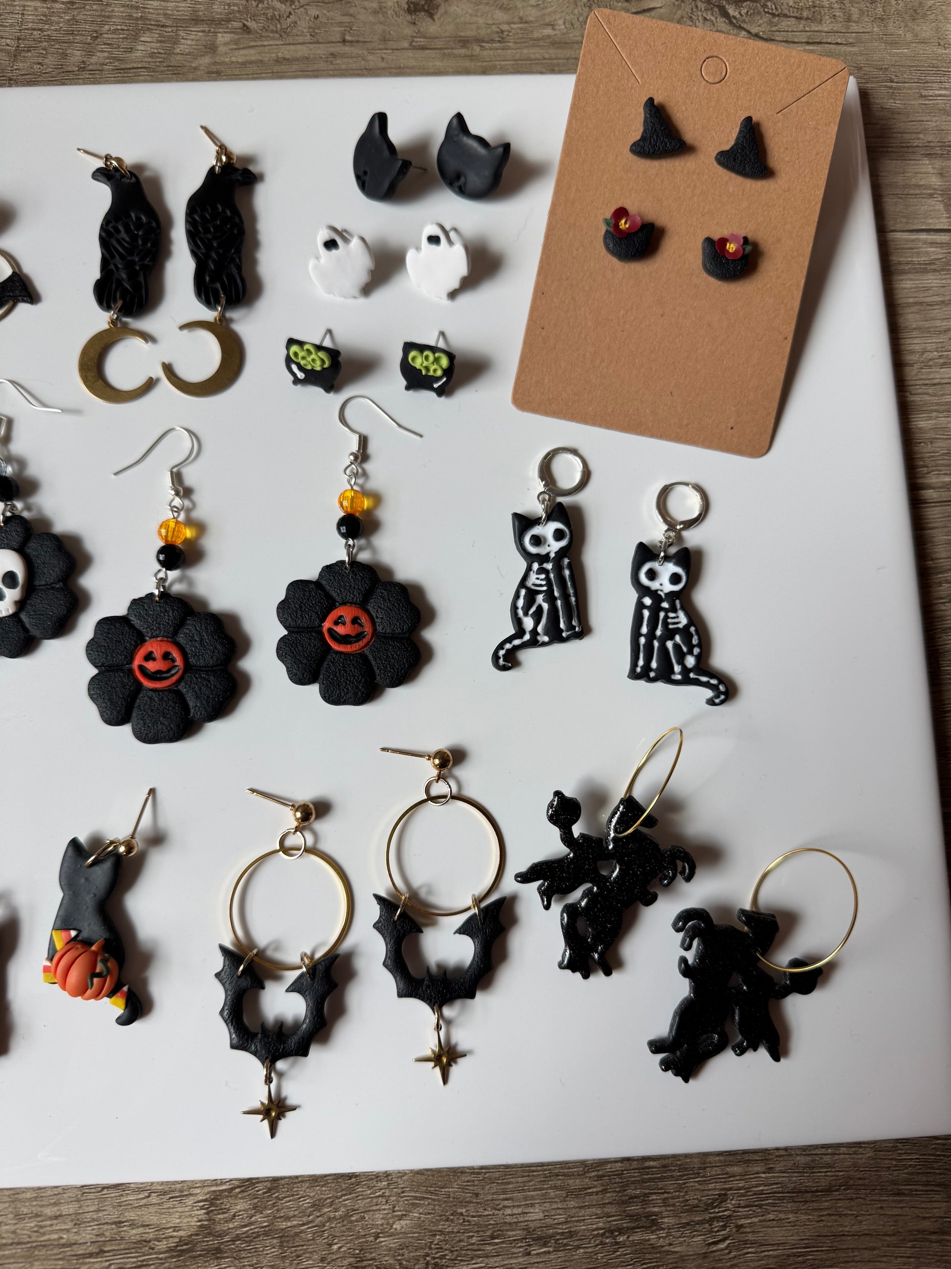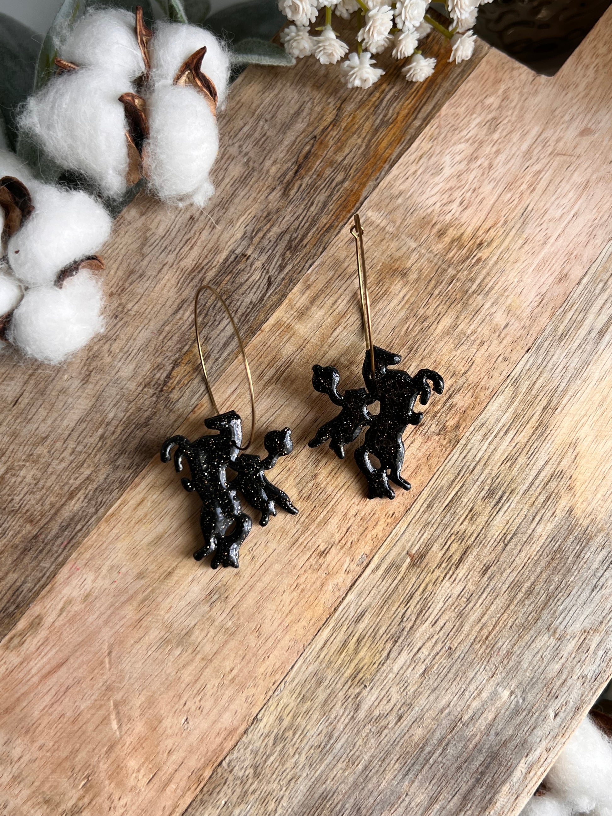 Headless horseman - shimmery black sparkle earrings with resin top coat on brass hoops