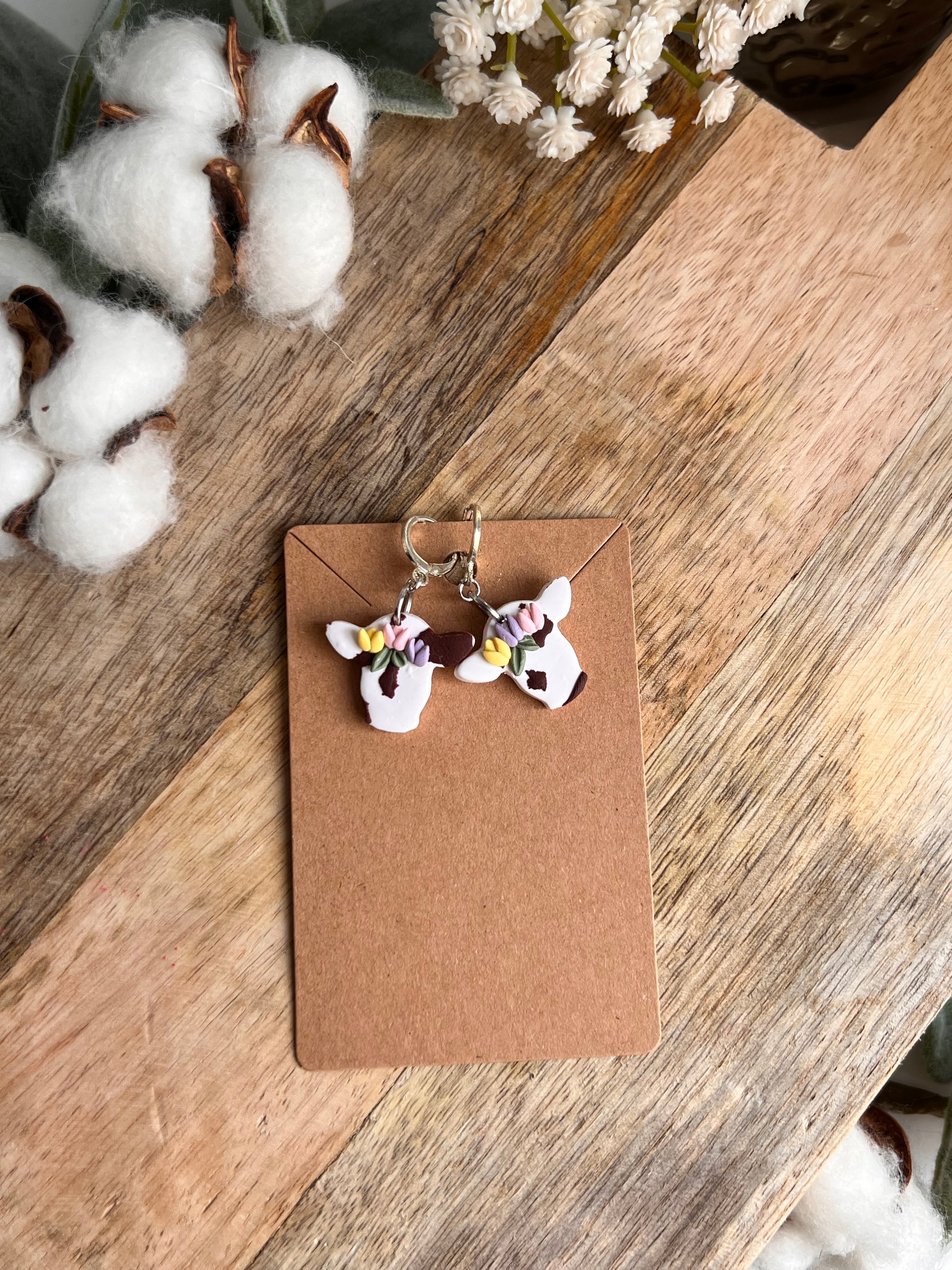 Brown Heifer with spring colored tulips on silver huggie hoops π π·Β