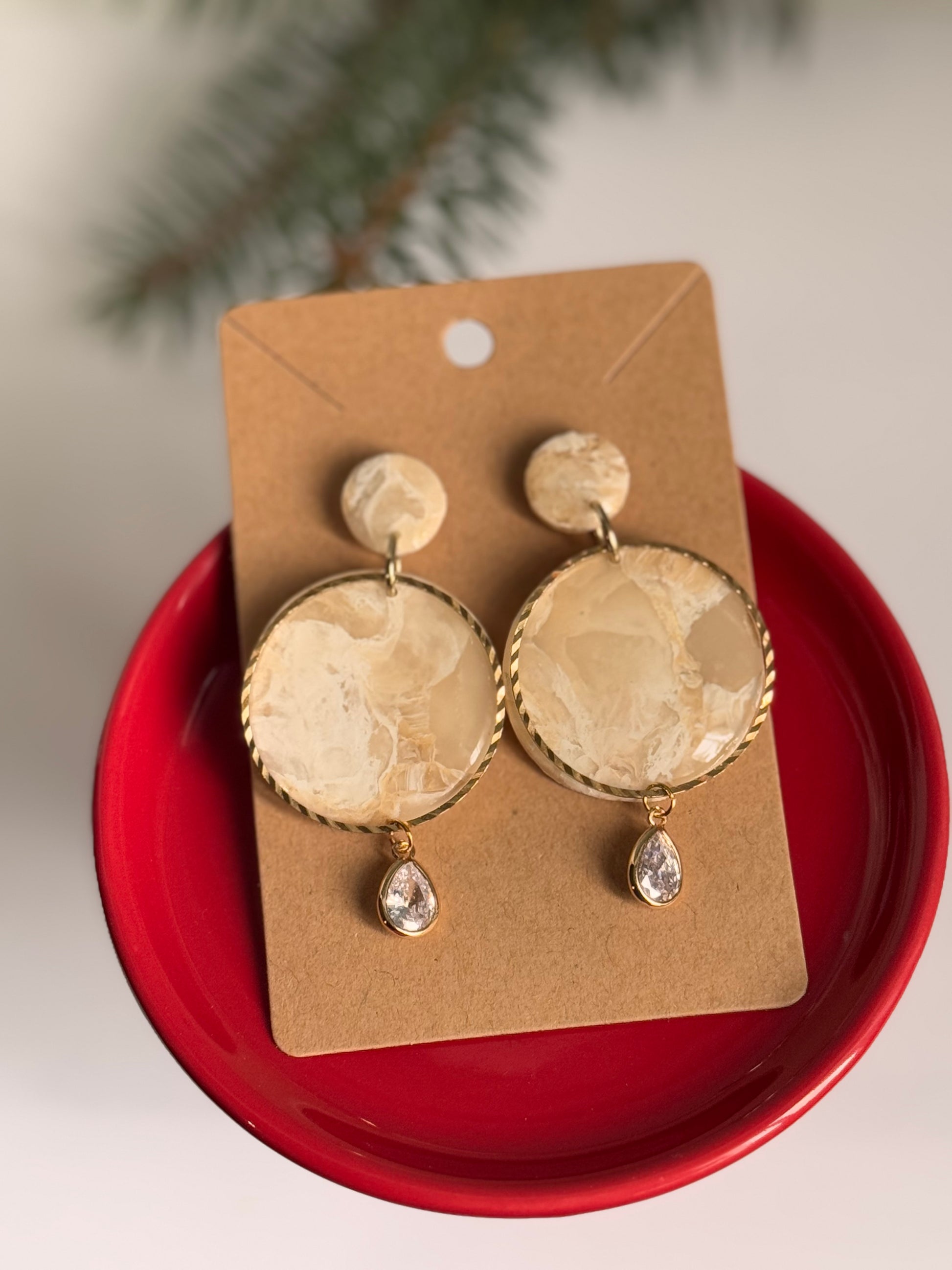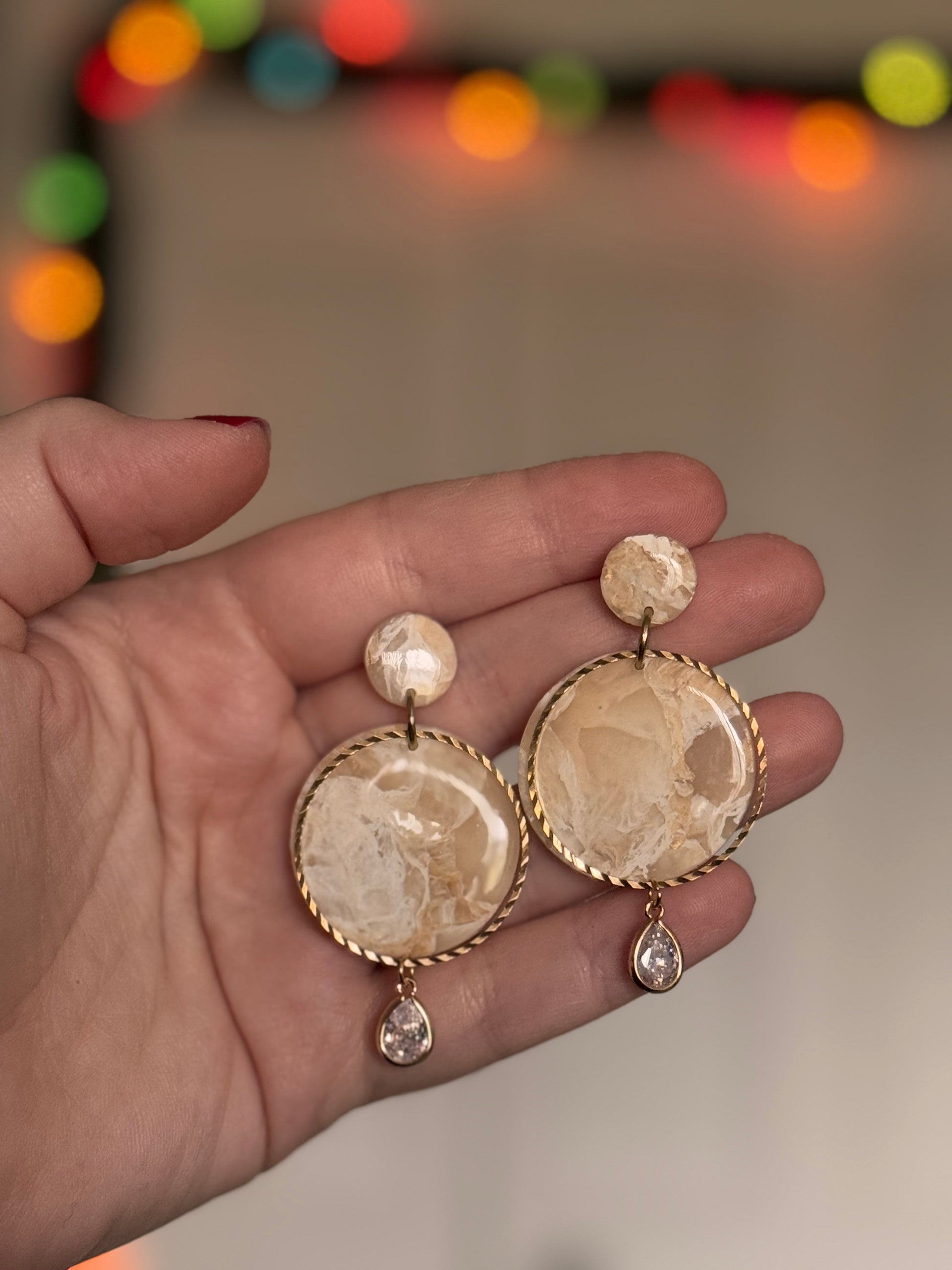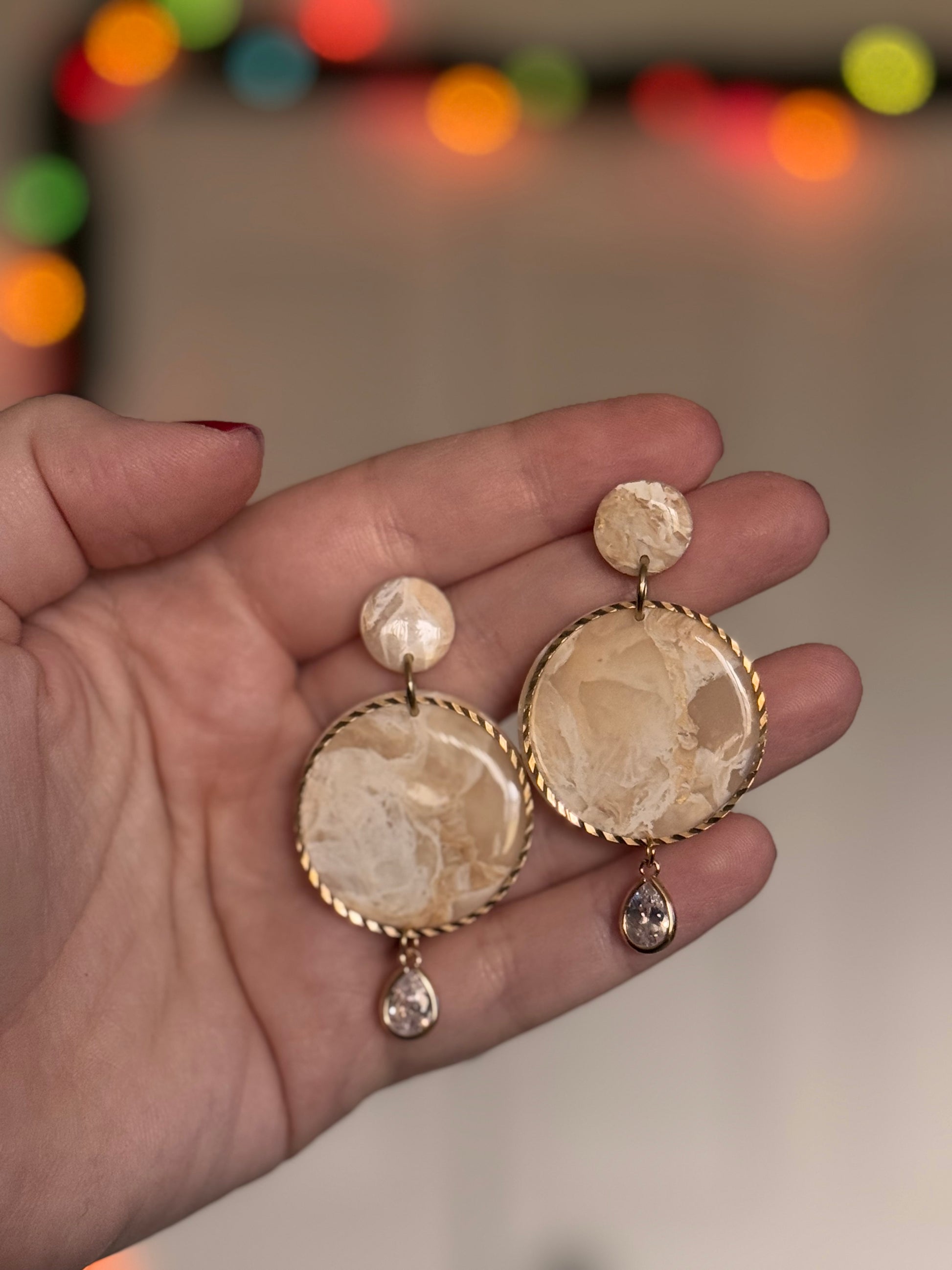 Translucent and white clay mixed and marbled and topped with crystal clear resin and braided brass charm and glass diamond bead ✨