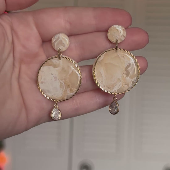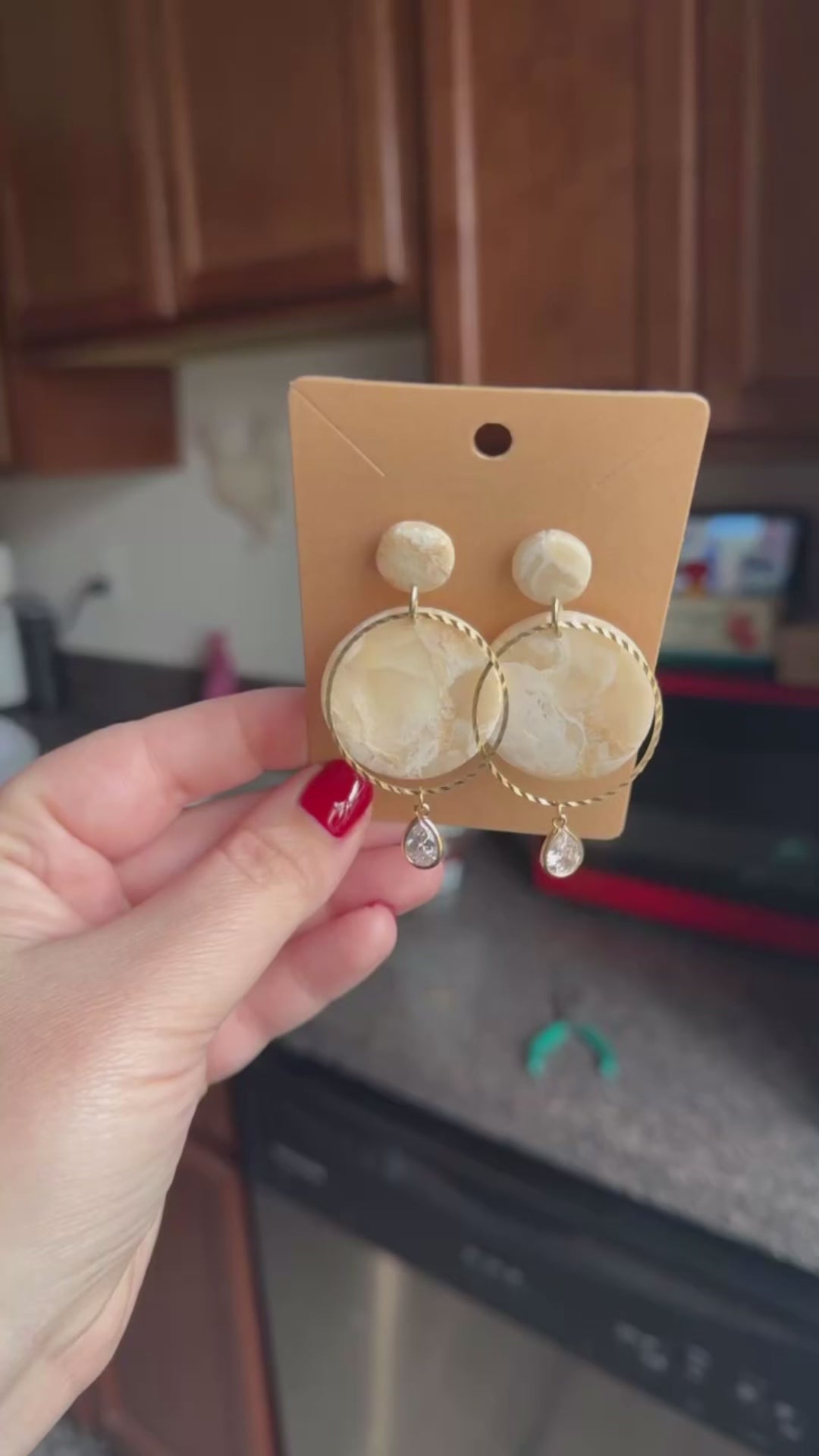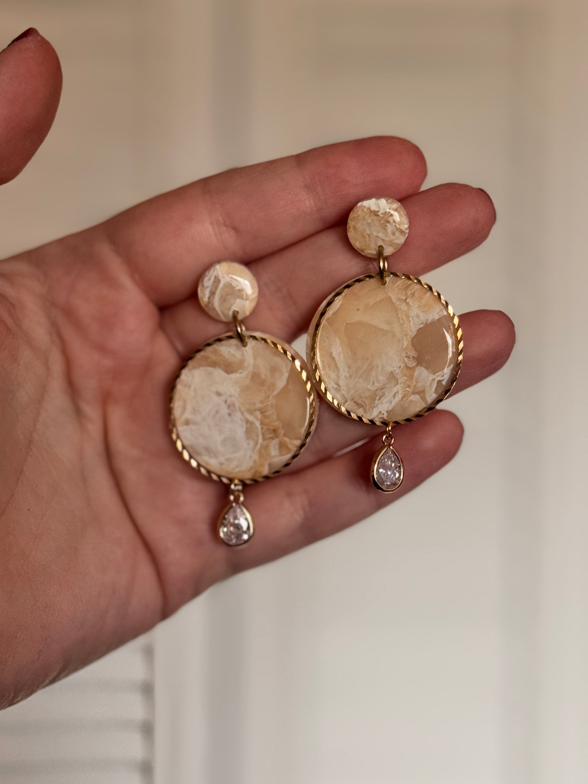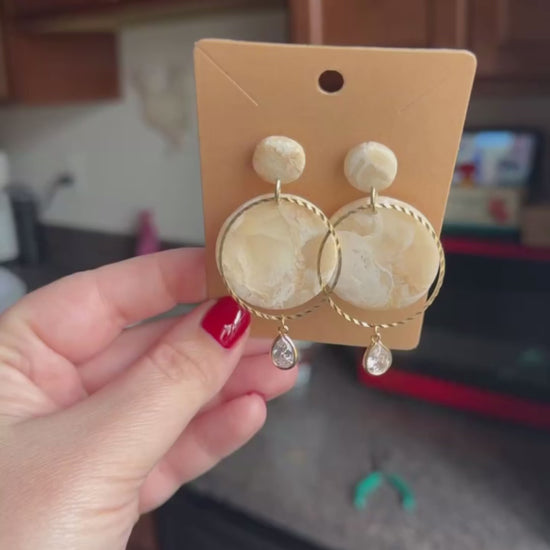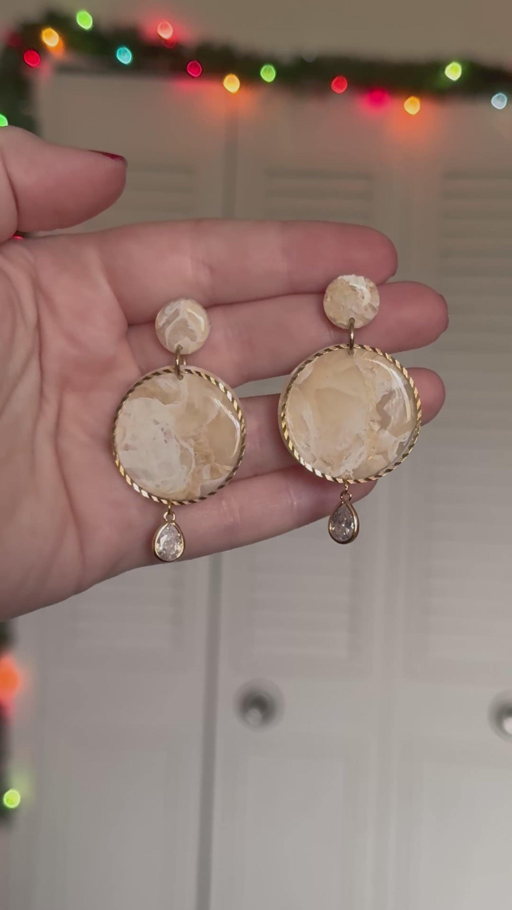 Translucent and white clay mixed and marbled and topped with crystal clear resin and braided brass charm and glass diamond bead ✨